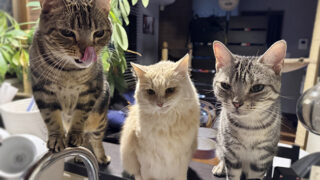 寒がりなアミ姐さんは気温の低い日はホイホイに潜って寝がちですがよく晴れて暖かい日には窓辺の箱の上にやってきて時々、外をすんすんしながら機嫌よくたっぷり日光浴。リビングにいる時間も長くなり人間たちの食事が終わるのをテーブルの端で待っていて最近...