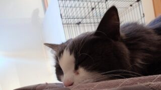 ねこ画像 最初の遠慮はどこ行った?と娘に問われる猫