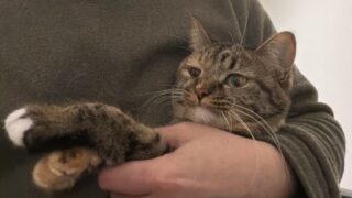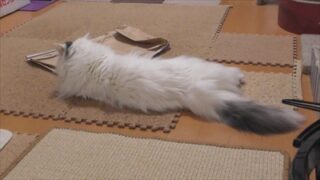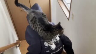 ねこ動画 大きくなっても娘が大好きで背中に乗ってあげる猫