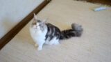 可愛いけど男の子です Black Silver Classic Tabby & White ① ♂ Reserved玩具に夢中で 尻餅ついちゃったミルフ余りにも可愛い雰囲気の彼 何度女の子かも知れないと疑ったことか・・・身体はまだ他の男の子に比べると少し小さく感じますが それでも確実に大きく成長しています大きな大福や トルテにタックルされながらも 逞しく育ち 今では しっかり応酬しています同胎の シュトルやムースと同じカラー Black Silver後の2匹は 我が家に多い黒色が濃くて 根元のみが白いシルバーにミルフは 黒色が淡く 白の部分が多いシルバーになりそうです 目がとても大きいので 可愛く見えるのでしょうが メインクーンの大事な要素である しっかりした下顎、四角いマズル、綺麗なノーズカーブを持っています 仔猫の予約状況は サイドメニュー ”Fairy-Pawの仔猫達” を 仔猫の譲渡条件は ”予約・お問い合わせ” をご覧下さい<(_ _)>お問い合わせのメールアドレスfairypaw nifty.com を @ に替えて 入力して下さい m(__)mご興味の有る方は メールにてお問い合わせ下さいね~ もうひとつのブログ “ ポーのうたたね ” では、我が家の猫達・旅立った猫達の近況・日常のあれこれを UPしております。こちらも 是非 ご