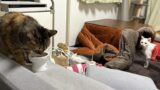 こんにちは。お母さんです。 クリスマスツリーが完成して、正確には1時間も経ってません。 オマメがゴソゴソし始めたので、登るかも!って思ったお父さんが 即スマホを構え、数秒後。 ドンガラガッシャーン 盛大に倒れたクリスマスツリーです やっぱり90センチのツリーとは、比べ物にならない迫力でした。 横から撮ってたら良かった〜と嘆くお母さんに、 「あ!監視カメラ映ってるかも!」とお父さんが確認。 倒れる様子も、お父さんがスマホを構える様子も全て映ってました オーナメントは娘が飾る時、ちょっと工夫をしてくれてたので、さほど取れず、 「おお〜」なんて言ってた矢先、大問題が発覚。 真ん中辺りでポッキリと、折れてたんです・・・ 「折れた!」って聞いた瞬間のオマメがこちらです。 「え?まじ?」みたいな顔してますかね? そんな風にも見えなくもないんですが、 せっかく飾った娘が、ぼーぜんとする横で、ご飯を待ってるオマメは、 やっぱり反省はしてないと、お母さんは思うのですよ でも、無惨にも残った下半分のツリーも、上半分のツリーも、 見れば見るほど何