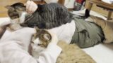 肩に乗り続けると椅子を譲ってくれることを覚えた猫
