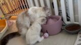 動かないママよりもおもちゃの方に反応しちゃいました。