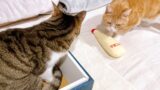 桃の空き箱がお気に入りでもう桃の残り香は消えてしまっているけれど毎日みっちり入って寝ているアミ姐さん。姐さんがゴキゲンなのでバーバーチャンスかも?ってんで、来ちゃうユウ。いきなり頭をペロリとすると姐さんに逃げられそうなので箱まわりを嗅いでみたり自分の毛づくろいをしたりしてさりげなく傍にいるだけ感を醸し出しておる。姐さんが眠そうになってきてそろそろいいかもと一歩踏み出したとたんに低~い声でうなられて固まるユウなのでした。ちょっと早かったかな。(^_^;)ブログランキングに参加しています。バナーをクリックして応援していただけると光栄なのです。