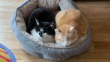 今はもう敷物になってしまったあのニャンコベッドの正しい使い方を「まっちゃん」が実演。