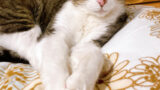 ユウは大きなふかふかがたいへん気に入ってそれまでほぼ毎日使っていたマッサージ椅子の寝床にまったく向かわず。マッサージ椅子、卒業?アミ姐さんが猫城を経由してマッサージ椅子へ。ユウがもう使わないなら使っちゃおうってことか?以前は姐さんもよく寝ていたもんね。