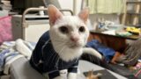 接触はさせずに空間を共有している麿白先生と琥麦のウチューネコ兄妹です。おおムギよ、ぼくと遊ぶといいよ。あんちゃんその手の下のおもちゃを出してゃぃ。おもちゃを横取りする麿白先生です。とはいえこんな感じで空間は共有しています。麿白先生も琥麦に対しては今までの預かり子猫とはちょっと態度が違います。それは何かというと。琥麦と同じ空間でもこうして珍妙全開で甘える事。これをやるのは時雉と参瑚、場合によっては暁璘くらい。もっとも、今は琥麦と接触させずやや距離をおいてるからかもしれませんが。甘えてると思ったかい?しっかりぼくはムギの成長を見守っているのだよ。その琥麦は後ろで麿白先生のトイレでウンモしてました。麿白先生の療法食を盗み食いしようとするのも相変わらずです。