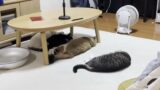 今回の血液検査で甲状腺機能亢進症の診断を受けて療養を開始した参瑚。延長線上に腎不全があるのでそのつもりでケアに臨みます。とはいえ、我が家の療養が必要な猫をよそに、最も扱いに気を遣ってたのが参瑚でもあります。まずはそのガラスのハートおよびナーバスさ。他の猫たちはやらかしたら強めに叱りますが、参瑚を強めに叱ったのは時雉と本気目にぶつかった時くらい。参瑚の性格から言って、強めに叱るのは気を病んでしまうだろうという判断です。ちなみにその時は麿白先生の方がキレてしまってました。なにしろ参瑚はご存知の通り、文字通りの少年猫時代から知ってる仲。木に登って降りられなくなって鳴いてる頃の参瑚も知ってます。あいつ、毎朝来てるな…という顔の少年参瑚。懐いたのは2014年3月末の桜の頃。この頃の事をどれくらい覚えているのか。ただ、参瑚は病院にいくので追いかけてシャー!はするものの、爪出しパンチなどの攻撃をしてきた事は一度もありませんし、病院から帰宅すれば一度は逃げるもののすぐに現れて腹減ったぞーとアピールしてきます。なので、たぶん色々な事は覚えてると思ってます。縄張りにうるさい参瑚がこうしてしばらく別室暮らしだった麿白先生との同居をするのも、保護直後のことをちゃんと覚えているからだとも思ってます。大抵の猫はそうであるように、参瑚は義理固いんですね。そして琥麦とのこたつ同居も当たり前になってきました。参瑚の