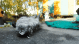 みうは長毛、もっふもふ。長毛だと、体の各パーツが毛に埋もれて、全然見えないとか、一部しか見えないとか。見た目の変化が楽しそうで、ネタ探しに困らないように、思える。実際は、困ってるのだが。数少ないみうの一発芸。えびふらい(冷凍、揚げる前)。視点を変えて、上から見ると、なんだか、なんとも言えない姿だな。長毛の上、短足。余計に見えにくいパーツ。まぁ、でも、長毛を見慣れていれば、ネコさんだな、っていうくらいにはネコっぽい。ところが、説明を付けてみると、いきなり謎の生物っぽくなるから、不思議。