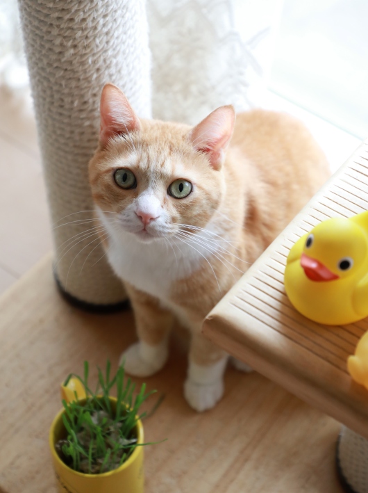 朝ゴハンの用意が整いましたよ。と、声をかけても消極的なことも多いユウ。