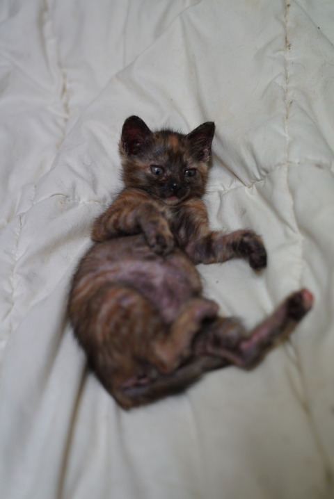 我が家はサビ猫が通算4匹深く関わってきてまして、割と見分けはつきやすい柄と思ってます。こちらは2代目胡春。目の周りがややハチワレ気味です。あとは色が濃かったですね。恐らく成長したらもっとオレンジ部分が鮮明になるのかなと。こちらは磨崙。右手のオレンジ手袋が鮮やかです。表情が柔らかいのがいちばんの特徴でしょうか。こちらは2018年1月に保護預かりだけした六花。顔の黒が濃くて目ヂカラがありたぬきみたいでした。そしてこちらは2019年秋に夜の駐車場で鳴いていた涼珠。顔のオレンジの入り方が特徴的です。この時点でまともに食事ができないくらいの末期でしたが、元気な頃は目の表情はどうだったのでしょう。しっぽの先も筆みたいになっててこれも痩せたからゆえか。みんな性格がややビビりで温厚で甘えん坊だったのが印象的です。2代目胡春はそれゆえに兄妹姉妹からやや取り残され気味で、その時の動画コメントで「どうせあたちはみそっかす…」というのを頂き、それが暁璘の「どうせオラはおミソだべ」というのに使わせて頂いてます。それくらい、おっとりのんびりでした。全体の柄の割合でいえばレア柄のサビ猫ですが、独特の魅力のある猫たちだと思います。磨崙もトライアル待ちで家猫修行中ですが、歴代トップクラスの甘えん坊になって離れません。だからこそ、里親様のもとで幸せになってほしいと思います。//pagead2.googlesyndic