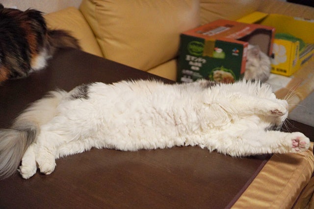 こんにちは 10月になっても変わらずテーブルは我が陣地 とでも思っているかのようなシンディです なんてのびのびと過ごしているのでしょう その向こうにはこれまたいつもテーブルの相方 アリエル でもシンディがどーんと斜めに寝ているので文句があるのかこの表情 この仔は本当に分かり安い仔です そんなアリエルの事はお構いなしに シンディの毛づくろいタイムは続きます せっせと毛づくろいに励むシンディを見ていたアリエル 狭いながらもこれまた毛づくろい 猫って誰かが毛づくろいし始めると移りませんか? 人間で言ったらあくびみたいなものでしょうかシンディの様にのびのび毛づくろいとは行きませんでしたが それでもアリエルの毛づくろいは続くのでした おまけの