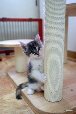 <はじめておいでの方へ> メインクーンキャッテリーCAVALLINOへようこそ。日々の出来事や子猫情報などを綴っています。大家族ですので、わが家の家族紹介No.1とNo.2をご覧下さい。ペトハピ 太鼓判ブリーダー に掲載されました。クリックすると見られます。大家族の暮らしは悲喜こもごも。まあ、子猫たちは順調すぎるほど。日々やんちゃになっていきます。「ポールダンサー志望」ま、こんなのは大人しくて可愛い。それが・・・・・・・こうなる(笑)「上を目指す」しかし・・・・・・「アレ??」ネズミ返しならぬ「猫返し」で頭がつっかえた(笑)参加しなかったお嬢さんは・・・・・「アタチハオトナチイ」嘘つくと閻魔様に舌を抜かれるよ~!男の子たちも相当色々やらかしています。「お砂場遊び」そこはお砂場じゃない~!!そしてそれは猫じゃらしじゃなくてシッポ~!これで取っ組み合いになって砂をまき散らす。とほほほ・・・・・・・本日のお・ま・け♪子猫は順調なんですが・・・・なめ壊しがあったトントン。洋服を着せて、やっと傷がきれいになってきたと思ったら・・・・なんでだか傷が広がって膿んだ。お薬を変えて・・・・・もう年なので免疫力が下がってきたのかなあ。 ランキングに参加しています。バナーを2つポチッと押していただけると嬉しいです。頂いたコメントは