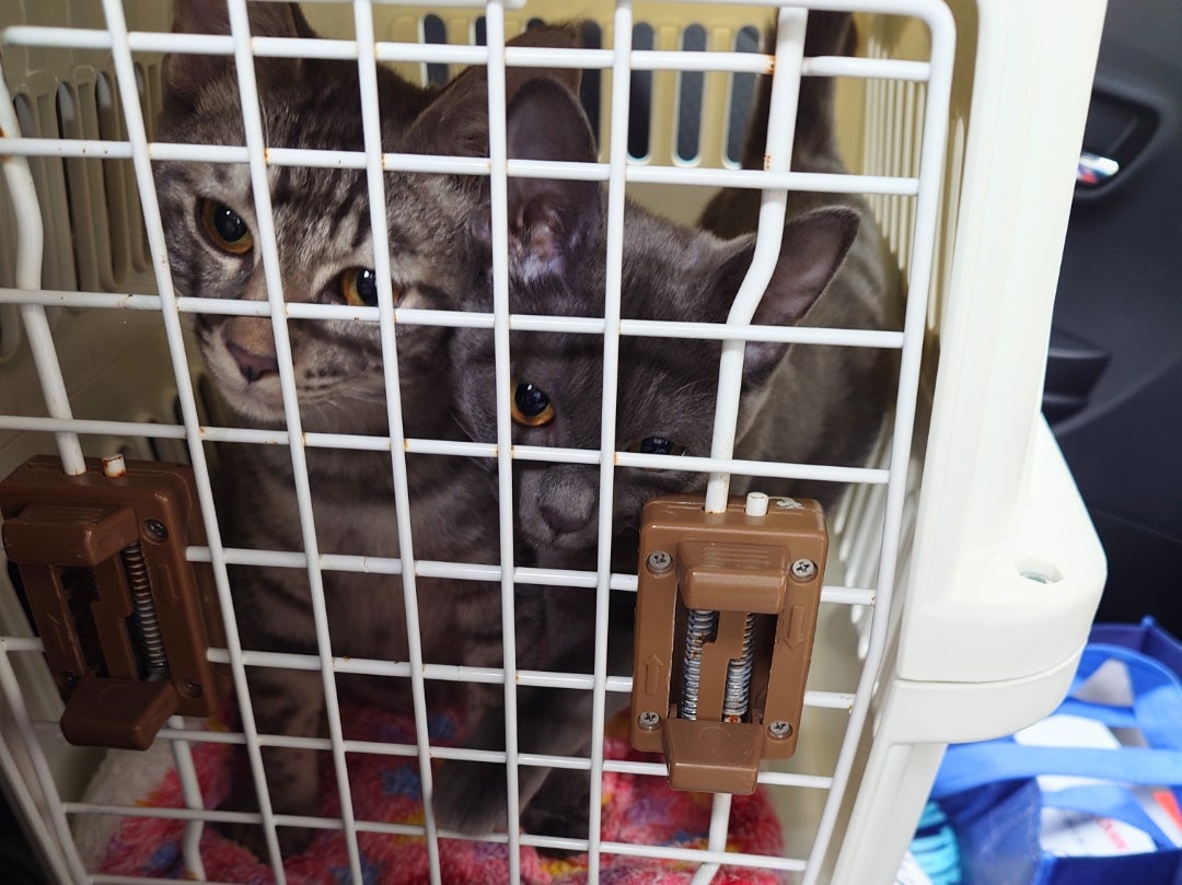 いつもご訪問&応援ありがとうございます♪ 今日はクヌム&ペレトのお届けに行ってきました! 「ついにこのひが」「やってきたなの」 出発前に爪切りしたのだけど、ゴロゴロご機嫌で楽勝。そのままゴロゴロドライブw お天気がイマイチだったせいか渋滞もそれほどではなく、予定通りに到着。 到着すると‥ 「ついたでち?」「あいたなの!」 「たんけんかいしなの~♪」 ちょっと緊張気味のクヌムを尻目にしっぽを上げてとっとこ探索するペレト。とはいえクヌムもすぐに慣れて‥ 「おっきいおねえちゃんでち」 お姉ちゃんのお膝。 「つぎはままでち~♪」 ご説明の間も可愛いを連呼して、気もそぞろという感じのママにも抱っこ。 「わたちはちっちゃいおねえちゃんとあそぶなの♪」 姉妹の子たちもそうだったけど、トライアルいる?な馴染みっぷりwこの子たちは物怖じしないので、お子さんたちがいて賑やかな環境にも向いています。ビビリな子だとお子さんによっては距離ができてしまうこともあるけど、そういう心配もないので、私の滞在中もキャッキャバタバタ遊んで走っていました。 おやつももらって‥ 美味しい顔(๑❛ڡ❛๑)ペロ お名前は、クヌムが琥珀くん、ペレトがクレアちゃ