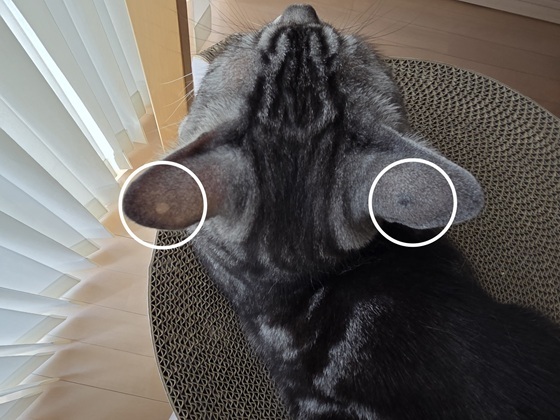 スポンサーリンク プラマイゼロ? アメリカン・ショートヘア 2025.10.07 あめちゃまの耳の、片方は濃く、片方は薄い。濃い方は、特に膨らんでるとかでもないし、薄い方は、特に薄くなってるでもない。プラマイゼロ的な?何かが居るわけじゃないけど、何処かを一生懸命見てる。ちょっと笑える2枚。室内カメラより。Source: *あめ*のひとりごとリンク元