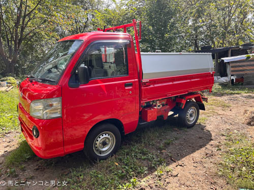 「名前つけなくても いいんじゃない?」σ(^^;) もそう思う けど 軽トラ2台あってややこしいから栄子ちゃんに決定。