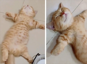 子猫の特徴の1つとして、ぽんぽこお腹が挙げられるだろう。こんなの。※ Google先生経由でこちらから無断借用。うちで子猫っぽいと評判(?)のりん。実は、わりと童顔に見えることもある。なら、ぽんぽこお腹に童顔を合わせたら、見事に子猫なりんになるのではないか?きっと、いつも以上にかわいいに違いない。さぁ、いってみよう!321で~ん!え~。おっさんになりました(棒読み)。童顔+ぽんぽこお腹=おっさん?誰かこの方程式が間違ってると証明してくれ。でも、こういう先例もあるしなぁ。※ Google先生経由でこちらから無断借用。童顔+小顔+ぽんぽこお腹=やっぱりおっさん?