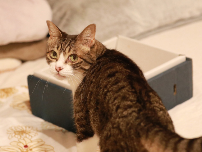 窓は閉めたのですがさすがの姐さんもリビングに入らずに遠巻き。かつては夏の開催でしたが秋の花火大会は暑くなく、寒すぎず、快適。以前とは打ち上げ場所が変わって我が家からは見やすくなり人間たちにとっては楽しい花火大会でしたが静かになると、ほっとしてバリバリ爪をとぐ姐さん。ビビりん坊のユウはずっと物置部屋にいたらしく