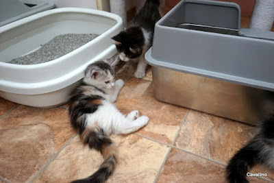 <はじめておいでの方へ>メインクーンキャッテリーCAVALLINOへようこそ。日々の出来事や子猫情報などを綴っています。大家族ですので、わが家の家族紹介No.1とNo.2をご覧下さい。ペトハピ 太鼓判ブリーダー に掲載されました。クリックすると見られます。子猫のお仕事は「遊ぶこと」dinoも猫になりたい。あっちこっちで・・・・・・「ヤルゾ~」「ニャニヨォ~!」毎日戦いが繰り広げられております。この時期だと性別での大きさの差があんまりないので、互角にみんな戦っております。みんな元気印。ワクチンの後も元気だったなあ。「オスナバ~!」お砂場じゃないって~!あまり元気に飛び回るので・・・・・撮れた写真は「後ろ頭」と可愛い「お尻」ばかり。とほほほ・・・・・・本日のお・ま・け♪「入りたいなあ」おつむの中身が子猫並のカメ吉。一緒に遊びたくて仕方がない。その図体で走り回ったら「怪物が来た!」って言われちゃうよ。 ランキングに参加しています。バナーを2つポチッと押していただけると嬉しいです。頂いたコメントは楽しく拝見させていただいております。ブログを書く励みになっていますが、個別にお返事するのをお休みさせてもらっています。それでもいいよ、という方コメントをぜひお願いいたします。初めての方もご遠慮なくどうぞ