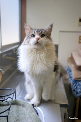 <はじめておいでの方へ>メインクーンキャッテリーCAVALLINOへようこそ。日々の出来事や子猫情報などを綴っています。大家族ですので、わが家の家族紹介No.1とNo.2をご覧下さい。ペトハピ 太鼓判ブリーダー に掲載されました。クリックすると見られます。まず変わってほしいもの。アリゴテとピオーネ、別居生活中。アリちゃんの機嫌はなおって、ピオと一緒にいたいって言う。でも、怖がりのピオーネがアリちゃんに怒られたのがショックだったらしい。アリちゃんを見ると唸るようになっちゃった。まあ、ずいぶんよくなってきたので、改善傾向。焦らずゆっくり行きます。もう、こりました。えっと・・・・変わらないもの。サファ、シャンプーしたんですが・・・・・ビフォーアフターう~~~ん・・・・・・変わってない気がする。胸の毛のワレワレがなくなってボリュームダウンした・・・・かな?毎日見ていると変化に気づかない事もある。以前の写真と比べてみて「あ!」ってなる事はしょっちゅう。リヴィーさん。ビフォー(2か月後)アフター首回りに毛がなくて、むち打ちの人がするネックカラーみたいだった。耳ばっかり大きくて「ウサギクーン」ずいぶんちゃんとしたメインクーンになりましたね。生後10か月になりました。本日のお・ま・け♪「危険な遊戯」好奇心旺盛でビニール袋大好きなメインクーン。気を付けないと首に引っ