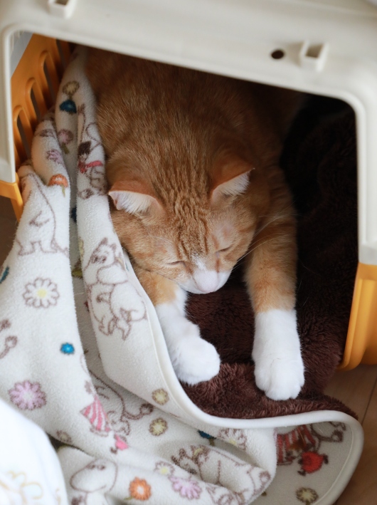 お下がりキャリーで毛布を好みにアレンジし