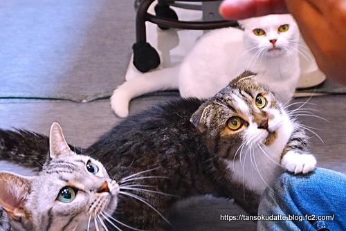 おやつを見せられると、猫たちはこんな真剣な目つき!だれが一番にもらえるか、真剣です!先にもらうためには立ち上がるのが一番!2足立ちが得意なマンチカンだけど、立っている姿勢があまりに真っ直ぐで、猫とは思えませんwwwラムなんか、逆に反り返ってる?!ツッチーもまっすぐ立ってます!↓Youtubeショート動画他猫より先に食べようと、2足立ちして食べちゃう猫たちなのです。偏食なレオンも、オヤツは大好き!貪欲に欲しがって、立ち上がっちゃうね!それを見習って、ルナも立ち上がる!頑張って立ち上がってる!もうおやつ無いのに、指まで舐めちゃう!美味しかったかな?お腹も満たされ、寝転がった。ツッチーって、マジで超短足なんだよね!そこがチャームポイント💓ルナはもう少し長いけど、やっぱ短足。ツッチーほどじゃないけど、ラムだってかなりの短足!胸の前で揃えたお手々が可愛いよね!↓Youtube動画短足猫って、何かと2足立ちしたがるんです。で、やらせなくても勝手に立っちゃう猫です。歳取ってるけど、可愛く見えるのは超短足のせいか?みんな短足のせいで可愛く見える(?)のでした!