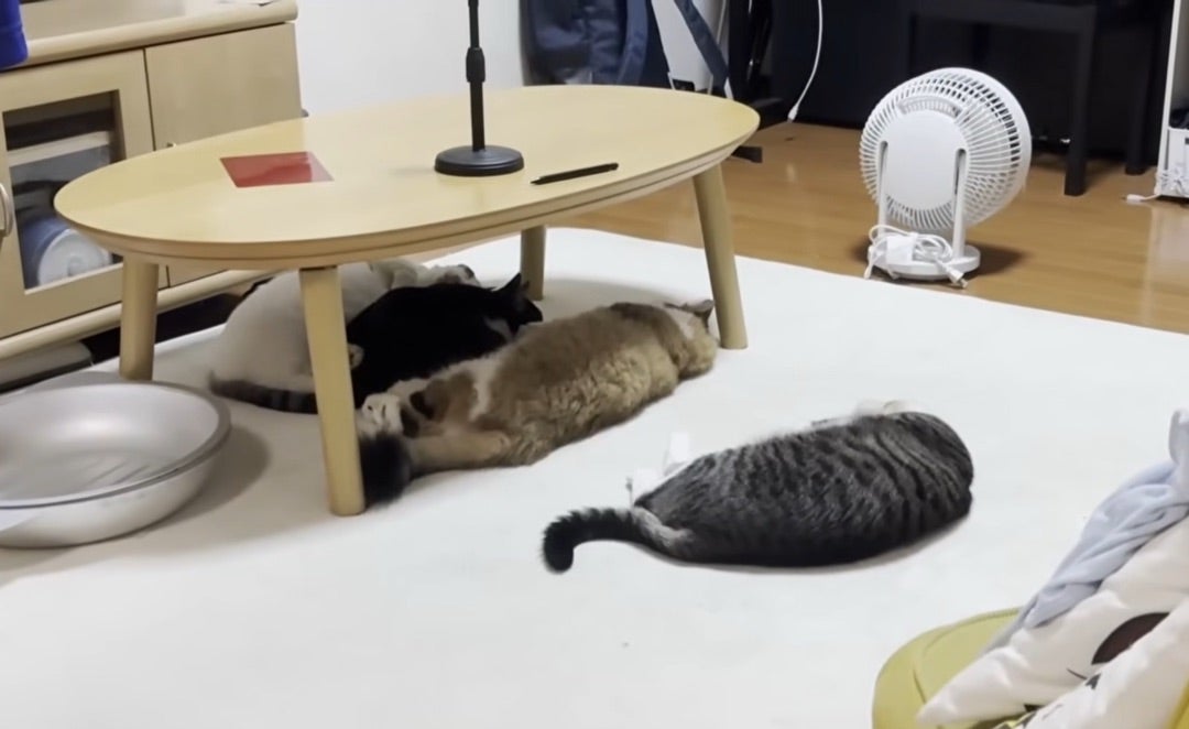 こんにちは。お母さんです。急に冷え込むようになって、早速我が家でも、ホットカーペットのスイッチをONにしました。そしたら、、、集まりました一昨日、布団を出して乾燥機をかけてたら、ひまわりが近距離で暖まってて、その後団子にもなってて、やっぱり寒いんかなぁ?と。と言うか、お母さんも寒いのが苦手で、まぁ、にゃんこの為と言いつつ、お母さんが我慢出来なかっただけなんですけど(笑)でも、ONにした途端、子供部屋から移住してくるオマメ達。床で落ちるところはしばらく見れなくなりますが、ホカペでダラダラしてるところはこれからが本番ですかわいい~基本、何したってこのまま。頭触っても、背中触っても、お腹触っても。でも、おやつの袋の音がしたら目開くっていう…さすが食いしん坊なところがかわいいです大好きなはずの散歩も、こんな時は拒否。暖かいもんね。分かるよマメさん!お母さんも1回ゴロンしたら、目が虚ろになるもんホットカーペットは、猫も人間もダメにする、でもなくてはならないアイテムです[youtube https://www.youtube.com/watch?v=jP4jxeiEvqQ&w=377&h=212] ポチッと応援宜しくお願い致します。