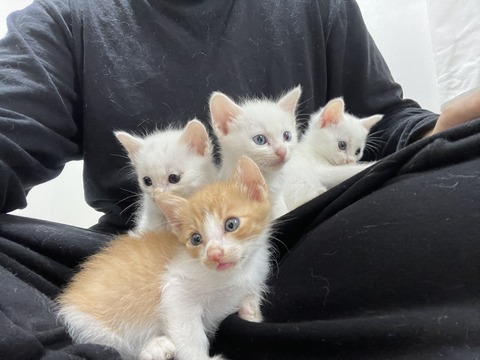 2022年は非常に大変な1年でした。その大変な出来事はこの子猫姉弟の預かり中に発生するという巡り合わせなので非常に印象深い猫たちです。この4匹育成だけならそんな負担でもありませんでした。あとは磨璘と珀瑛は我が家に残る可能性もありましたが、非常に有り難いご縁を頂けました。[youtube https://www.youtube.com/watch?v=Rz3OnCtIZQk?feature=oembed&w=560&h=315]その色々な出来事を列挙すると・最初はこの4匹だけだったのに直前で産まれたての3匹を押し付けられる・預かり時の場所で車で事故を起こしレッカー対応、中継に来てくれた人の車で我が家へ運ぶ・車は修理と保険対応・初日に橙恃が倒れて緊急対応・産まれたての3匹は育たず他界・保護の経緯は謎に教えてもらえず保護現場のトラブルに巻き込まれそうになる・珀瑛の胃腸が安定せず一時期は毎日シャンプーと投薬・磨璘の聴覚がない事が発覚・家庭内洪水、片付けと修繕、いろいろ負傷・桃璘の巣立ち直前に前足を負傷子猫は健康状態と怪我以外あんまり関係ありませんね。この4匹だけならいつも通りで大変とは感じなかったと思います。白猫だしマロリンズと絡めるかと思って姉弟名を「マロリンズJr.」と命名しましたがこういう楽観で望むと足をすくわれます。暁璘とは少し絡みましたが麿白先生とはほぼ皆無でした