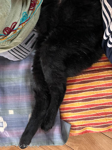 こうして我々の間に倒れ込めばあったかいし 母ちゃんが撫でてくれる。喉をグルグル鳴らしてはります。