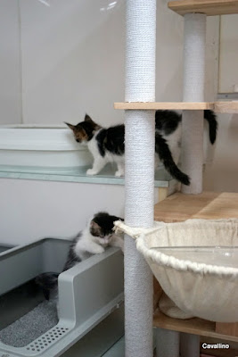 <はじめておいでの方へ>メインクーンキャッテリーCAVALLINOへようこそ。日々の出来事や子猫情報などを綴っています。大家族ですので、わが家の家族紹介No.1とNo.2をご覧下さい。ペトハピ 太鼓判ブリーダー に掲載されました。クリックすると見られます。子猫たちはその胎ごとに個性がある。今回の子たちは「高いところ大好き」「ウエヲメザシマシュ」掃除の邪魔~!いつ見てもキャットタワーにいる。落ちなきゃ何でもいいや。タワーの透明ボウルも怖がらない。大好きです。あんまり床にいるのを見ないなあ。あ・・・見~つけた!ロ~キ~さん!「カイブツガキタ」お母さんだよっ!!人間が大きいから怖い。でも上にいると大きく見えなくて恐くないのかも。恐ろしい事にみなさま大人のフードを食べております。高い所に上げても・・・今回は無駄。「ホ~~~」ルルさん、あのね、それはまだ・・・・・キャットホイールに興味があるようで、キャットホイールをサークルに入れました(笑)本日のお・ま・け♪ お疲れの母高い所に避難中。まあ、もう無駄ですが。「どよ~~ん」逃げても逃げても子猫が追ってくる(笑) ランキングに参加しています。バナーを2つポチッと押していただけると嬉しいです。頂いたコメントは楽しく拝見させていただいております。ブログを書く