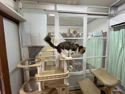 <はじめておいでの方へ>メインクーンキャッテリーCAVALLINOへようこそ。日々の出来事や子猫情報などを綴っています。大家族ですので、わが家の家族紹介No.1とNo.2をご覧下さい。ペトハピ 太鼓判ブリーダー に掲載されました。クリックすると見られます。何かが起きて急激に仲が悪くなってしまったアリゴテとピオーネ。その後です。向こう側がアリゴテ、手前がピオーネ。こうやって直接顔を合わせないようにして・・・・最初は全面このカーテンでした。ウォーク越しににらみ合いになるから、そこもふさいで。だんだんカーテンを開けて、キャットタワーも手前に離していたのを元通りに。普通に暮らせるようになりました。でも、ピオーネがいるのはブルーの部屋。交代で巨大なケージと外に。アリちゃんは自分が最初に怒って攻撃したのを忘れちゃったらしい。寂しくてピオーネに話しかけています。絶対に大丈夫って確信が持てるまでは元に戻せない。ピオーネ、どう思う?「別にボクはブルーちゃんと一緒でいいけど」いや、ブルーがストレスマックスになってきているからねえ。困ったなあ。 ランキングに参加しています。バナーを2つポチッと押していただけると嬉しいです。頂いたコメントは楽しく拝見させていただいております。ブログを書く励みになっていますが、個別にお返事する