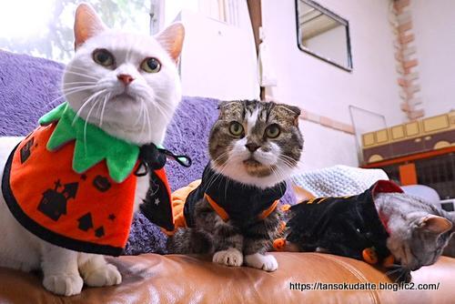 ハロウィンの日が迫って来ました!ハロウィンの仮装をして準備に取りかかった猫たち!どうですか?毎年のコスプレですが、みんな似合ってるんじゃないかと思います。まだ本番じゃ無いので、衣装に慣れてもらうために少し遊びましょう!久々の衣装で、動きが鈍い。やっと走り出しました!ルナとレオンはしばし見学。ルナは元々あまり動かないので、いつも通り。ラムは少し慣れて、走っちゃいます!↓Youtubeショート動画衣装を着たまま走り出し遊び始めちゃったラム!みんなだいぶ慣れたようなので、いざ整列!オヤツを見せたから、みんな舌舐めずり!けっこうイイ感じですね!↓Youtube動画コスプレしてみんなで集まってもらいましょう!なかなかきちんと整列はしてもらえないですね。じゃあ、この調子で本番もヨロシク!31日の本番に続く!