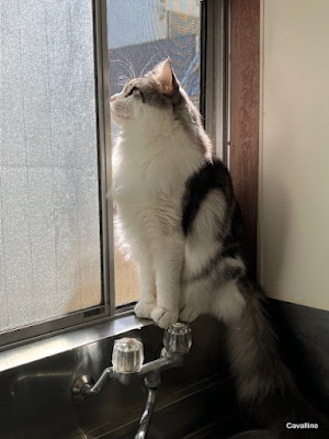 <はじめておいでの方へ>メインクーンキャッテリーCAVALLINOへようこそ。日々の出来事や子猫情報などを綴っています。大家族ですので、わが家の家族紹介No.1とNo.2をご覧下さい。ペトハピ 太鼓判ブリーダー に掲載されました。クリックすると見られます。急激に寒くなった日もありましたが、今の季節らしい気候になりました。メインクーンにとって過ごしやすい季節です。暑さが苦手なメインクーン。今くらいの気温になると、急に元気になります。朝日を浴びて、冷たい空気をいっぱい吸い込む。サファの至福の時です。あれ?空も好きなのにいかないの?「サファがどいてくれないんだもん」空は兄貴分のサファには譲る。大人しくてもサファはお兄ちゃんなのでしょうね。もふもふサファリヴィーもお父さんみたいにもふもふになるかな?性格はお父さんと全く違って気が強い。せめて毛くらい似てほしいなあ。ゆっくりビタミンチャージした後は・・・・「たっぷり朝ごはん」みなさま涼しくなったらすごい食欲です。あなたたちは冬眠前のクマですか? ランキングに参加しています。バナーを2つポチッと押していただけると嬉しいです。頂いたコメントは楽しく拝見させていただいております。ブログを書く励みになっていますが、個別にお返事するのをお休みさせてもらっています。それでも