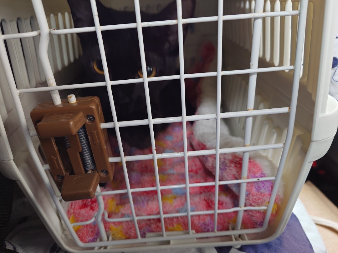 いつもご訪問&応援ありがとうございます♪ 三連休初日、ソルファのお届けに行ってきました! 「じょしゅせきなの~」 譲渡会へ行くのに後部座席に乗せるとめっちゃ鳴くんですが、意外と静か。たまに小声で話しかけてくれるくらい。 「あきたの!」 渋滞してるけど予想を大きく上回るほどではなく、予定通り到着。キャリーのドアを開けると‥ 「?」 「あっちみてくるなの!」 ‥と、すたこらお部屋の探索に。全く物怖じせず、ご説明中もカーテンで遊んだり余裕。 チョロ子なのでちょっと離れても‥ じゃらしを振ると飛んできますw これはおもちゃかおやつか悩んで何故か二足歩行になった謎のソルファ。 里親さんは初めての猫ライフ。譲渡会参加希望のメールからとても丁寧で、当日も猫と暮らしたいことへの情熱と心構え、脱走対策などをまとめた資料を作ってきてくださって。真面目かwってツッコミ入れたくらい(´艸`*) でも、そうやって一生懸命考えて準備してくださる方の家族になることは、とても幸せなことだと思います。チラチラ写り込んでますが、ケージもコンビネーションサークルを三段でご用意いただいて。お留守番があるのでその時間ものびのび過ごせるように、と。脱走対策もバッチリ。ありがたいです。 里