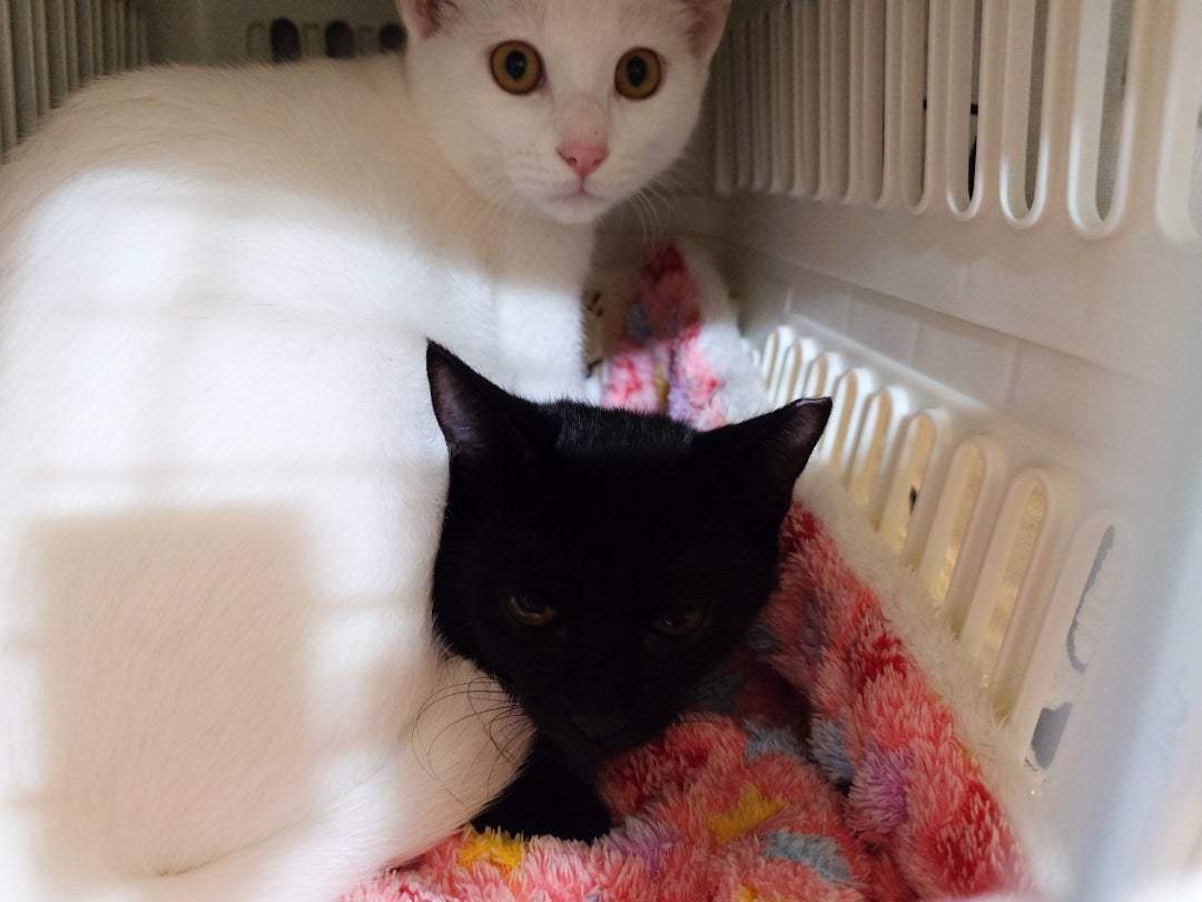 いつもご訪問&応援ありがとうございます♪ 土曜のお届けの続きを。ソルファをお届けした後一旦帰宅し、一息ついて夕方に再度出発。渋滞もなくて早く着いてしまう‥遅れるよりいいか💦 「かっぷるでおでかけでちか?」「わたちどきどきなの‥」 この2頭、それぞれ1頭で保護されて隔離期間はそれぞれ過ごしてましたが、FeLV(猫白血病)、FCoV(猫コロナウイルス)がどちらも(-)だったので結果判明後は一緒に過ごしていました。保護活動者が言う隔離期間ってだいたいみんな2週間設定だと思うんですが、FeLVは感染から1ヶ月経たないと抗原検査キットに反応しないので私は保護から1ヶ月は他の猫と接触させません。募集も2回目のウイルス検査をしてから。 というわけでヴィオレッタ、自分でキャリーから出てこないのはわかっていたので、抱き上げてママさんへ。 そしてお兄ちゃんへ。 生き物大好き!な小学生の息子さんが2人いるご家庭なのですが、譲渡会はご両親だけでいらっしゃっていたので、ヴィオレッタとお子さんたちは初対面。選んでくれたのはクロネコスキーのママさん。 緊張している様子でしたが、抱っこはクリア。人が好きな子なので、ひとりっこ嬉しいはず(´艸`*) ケージはこんな感じ。ベッドや爪とぎ、ブランケットもバッチリで、この段差を
