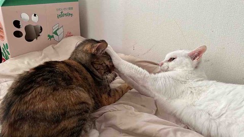 表題は「ケンカ」ですが、広い意味でのじゃれ合いも含めた話です。若い猫であればほぼ確実にじゃれ合いがはじまり、猫レスリングか猫ボクシングになります。その遊びと、ケンカとの境界線はどこか。そしてそのいずれについて人間はどこで止めるか、ですね。遊びであれば、片方が怪我をしてる等でなければ止める必要はないと思ってます。あとは、家の何かを破壊したり、夢中になって危険な状態になるような場合ですね。あまりに激しい場合、展開が一方的な場合はストップと仲裁などをして強い方に手加減を促してあとは見守る感じになります。暁璘による麿白先生へのシャオリンダイナミック(ぶちかまし)は基本止めませんでしたが、モナさんの高速プリンセスパンチは麿白先生が一方的にボコられる形になるので止めました。では、遊びとケンカの境界線はどこか。仲がよくても何かをきっかけにそういう事態になる可能性も稀にあります。遊びの場合はゆるい空気のまま始まりますが、ケンカは通常、前段階で「やっちまうぞこの野郎」みたいなマーーーーオ!が発生します。ウゴウゴウゴゴルゴまでいったら戦争ですが家猫のケンカでそこまではいきません。いかないはず。また、前段階がないガチなケンカもほぼないはず。前段階をおかずにやるような猫はやべえ奴です。当アカウントの登場猫だと流れキジトラがそうでしたね。ケンカの場合、猫飼いで同じ空間にいれば、明らかに猫たちの空気が変わるの