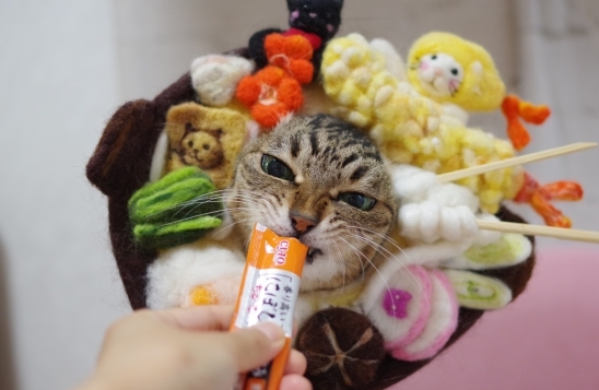 チョコ『鍋焼きうどんに煮干しちゅーるあうわー』キララとぷぷに元気玉有難うございます。切羽詰まった様な危機的状況ではないですが何か変・・・心配だって感じが続いてて・・・土曜日にはもうご飯全然食べなくなってたので吐き気止め入り輸液(吐き気止め20+普通輸液40)それだけではやっぱり何も食べないので2時間後耳につける食欲増進剤をそしたら何時間も木樽に籠ってしまいました。(気持ち悪さが出たかも?)何時間経っても食欲効果が出ず次の日の朝には普通に出て来て鳴いたりするんだけど食べれません。ちょっと食べようとするけど美味しいウェットも1口も舐めません。(ハイエナジーチュールだけは私が指につけ口元に持ってったら唸りながら頑張って何度も自ら舐めてくれます)昨日はエルーラ(新しい食欲増進剤)も少し試しましたが最初ちょろっと食べただけでその後はやっぱり食べれない。腎臓?膵炎?悪くなってなければいいが…そしてぷぷ。好調だって書いた土曜日の昼過ぎまで食欲あって調子良さそうでしたが3時過ぎから突然ご飯を拒否。(何やってもダメ)夕方には天袋から降りて来て全く上にあがらない。食欲も×夜にちょっと吐き、その後床で休んでて・・・その後ゴロゴロ音が鳴り響き(心臓の調子が悪い時)お水もなかなか飲めないんですよね・・・酸素室にもちょっといれました。その後元気になり「出してー」と。早朝には天袋に行ってご飯もまたモリモリと食べ