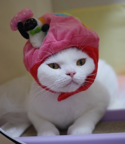 行方不明だったキノコのかぶりものが出て来たよ『おもち毒キノコだよ。食べるとビビリになるよ』『頭にクーお姉ちゃんも一緒だよ。』猫友のTさんから玩具を頂いちゃいました。ありがとうございます。蝶々の玩具と羽根がブンブン周る玩具です。新しい玩具ってなんでこんな興奮するんでしょうねw『きゃーーー新しい玩具めちゃ嬉しい』あんこが凄くて(笑)やっぱり若いわ。おもちくんまたビビって逃走しましたwww『興奮してるあんこは凄いから危険や』(玩具ではなくあんこにビビってます)蝶々もめちゃ反応良かったのですが、ダ・パーペラーが凄くって子猫時代を思い出すほどのジャンプの回数です。数十秒の動画も見て下さい。飛びまくりです。[youtube https://www.youtube.com/watch?v=vCoPD3lCOGg&w=358&h=515]ねーすごいでしょ。休憩ってことで酸素室の上にちょっと置いただけで・・・なんと飛び込んじゃった~(笑)キララですが・・・昨日の朝はステロイド入りの吐き気止め輸液をしました。吐き気止めも少し多めにいれましたがやっぱり自力で食べないです。(私の指からのハイエナジーだけです)今朝もいつもの開けてーがあるのですが・・・キララ『開けてーー』今日はぷぷとキララの病院ってことで時間が無いのでレスお休みさせてください。ランキングに参加中☆応援が励みになっていますぷぷ