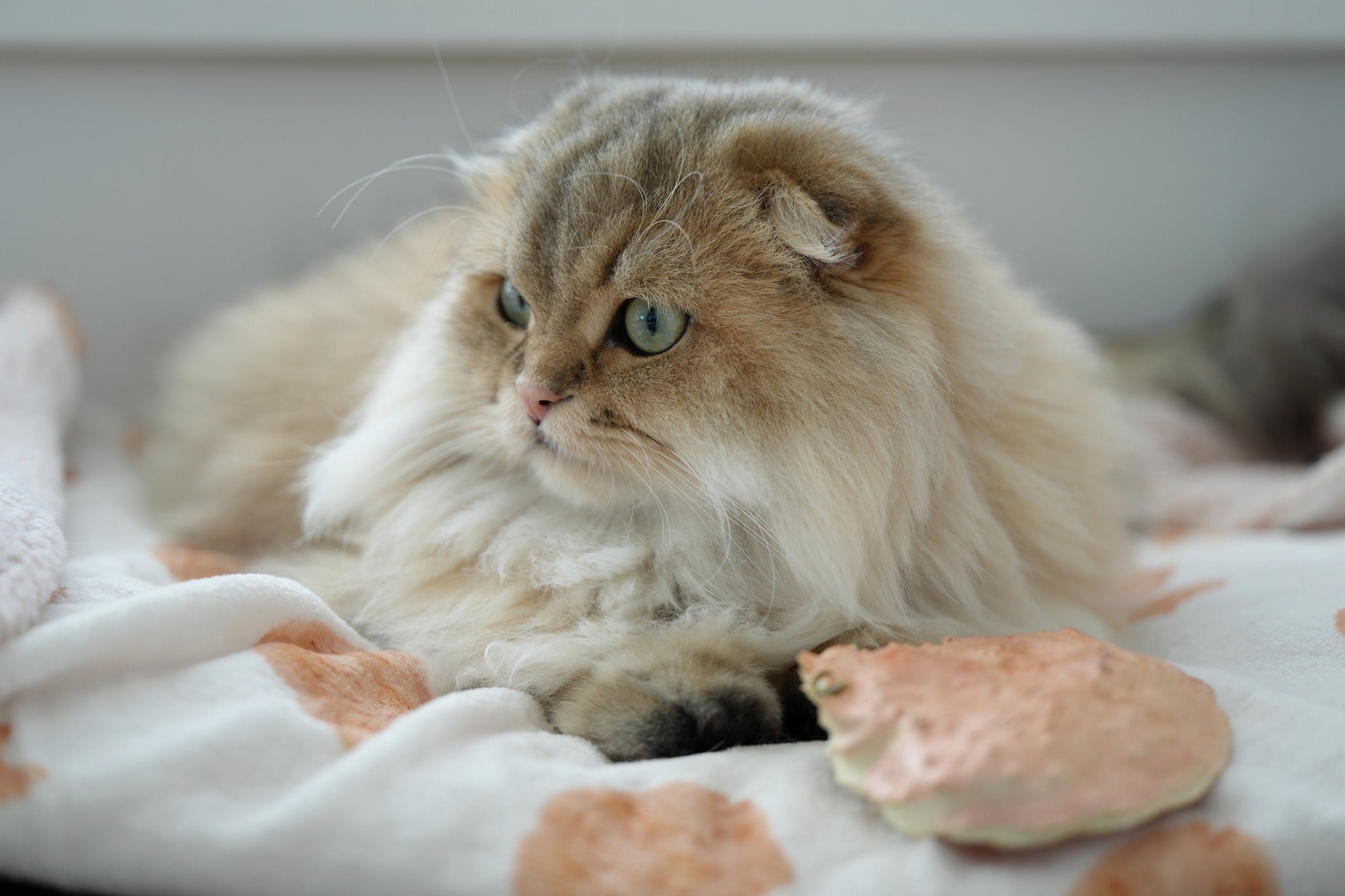たい焼き柄ブランケットでのんびりしてるレオくんと、 たい焼きにまぎれてる色あせてきたカニの甲羅。 レオくんはふんふんとにおいチェックします。 どうですか?カニのかほりはしますか? レオくん「ちょっとだけカニのかほりです。」 においがあるような無いような甲羅を一生懸命嗅いでます。 コロンママ「半月ほど前に食べたカニですよ。カニがたくさん出回る季節になってきたのでうれしいです」 レオくん「カニって季節関係あるんですか?」 コロンママ「この紅ズワイガニは一年中出回りますが冬のほうがおいしいみたいです。ズワイガニは11月~3月くらいのようですね。」 レオくん「ふ~ん、勉強になりました。」 コロンママ「よかったです。じゃあ勉強になったついでに乗せてみましょう♪」 何度か落としちゃって甲羅が欠けましたが、頭に乗ってるといえば乗ってます。 そして5回目くらいで、 斜めに乗せてカメラ目線を決めたレオくんです。 (レオくんはやればできる子です!) &n