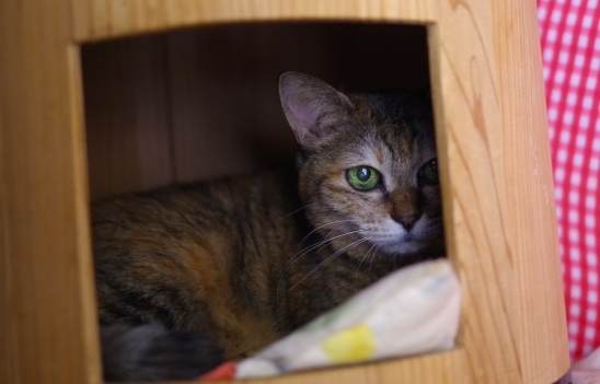 キララ、先生の指示通りステロイド&吐き気止め入り輸液を60mlを入れたら酷い副作用で約1日半も動けなくなりました。しんどそうで何も食べれない動けない…私が横に行くだけで甘えに来るのに一歩も動けない。昨日朝になって少し動き出し鳴けるように。カリカリもウェットも少し食べれました。これでやっと副作用から楽になるかな?って思ったのですが・・・ここからまた長かった。夜まで木樽ベッドの中でした。涙 (ごはんは木樽の中でなんとか食べる)昔はお薬入りの輸液100ml入れても平気だったキララですが、今は吐き気止めだけの輸液でも通常量入れるとしんどくなります。炎症があるので・・・ステロイドはいれたいけど…先生に相談したいけど土曜まで出勤されません。とりあえず今日はお薬入り輸液を25mlにし土曜日電話で相談しようと思います。初日はあんこの勢いに負けて全然遊べなかったおもち君ですが、二日目以降はあんこが居てなくて高い場所なら安心するみたいでお『やるでーーっ!今がチャンスタイムや』まず蝶々の玩具でも大興奮久々に大ジャンプしたんですよ。そして次の日。タワーの所に居るおもち君に羽根の玩具を振ったところ凄かったー!!床で久々に何度もジャンプしたんだけど、全然撮れてなくてー😨😨テンション上がり逃走してキャットウォーク爆走‼久々にあんこも圧倒されるくらい遊んでくれました。