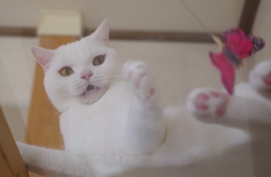 連日新しい玩具ブームが続いています。イベントで買った玩具より頂いた玩具の方が反応が良いという(笑)おもち君興奮してまたキャットウォークにそしておくちが開いてますねwwあんこもバンバンジャンプしてます(撮影間に合わず)羽根の玩具は、羽根が壊れると途端に遊ばなくなるので・・・壊されないようにと思うけどおもちもあんこも掴むと離さないので💦↓あんこは口に咥えるよ飽きないように大事に使いたいわ~キララに応援玉ありがとうございます。副作用って辛そうです。気持ち悪いってより身体がとても重そう。なんです。普段普通に上がってる爪とぎの上も上がれなくなってました。昨日の朝の様子↓本調子じゃないみたい。炎症の影響もあるだろうし吐き気止めとステロイドのお陰でウェットは少しだけ食べる程度。↑木樽の中で食べてます。昼過ぎからようやくいつものキララに戻った感じで普通に寛ぎだしました。担当の院長先生は土曜まで出勤されないしそれまでずっとモヤモヤ心配なので・・・病院に報告電話しました。そしたらお休みの先生に連絡取って下さったんですよ(有難い)直接診たいので(土曜以降)来て下さい。そして輸液はそれまではストップしてくださいとのこと。土曜行ける時間は予約が埋まってたので、日曜朝診察予約しました。☆おまけ☆インスタの案件で富士フイルムさんのFUJIFILMプリント&ギフトでカレンダーを作らせてもらいました
