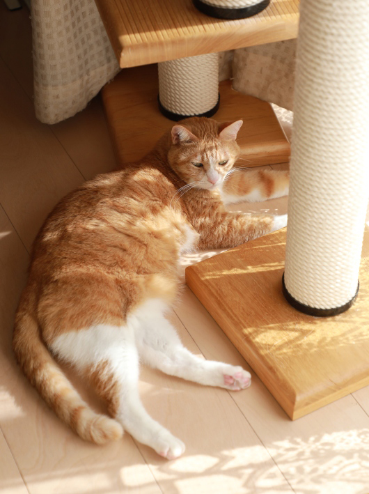 晴れた日の窓辺はちょいと暑いくらい。あっという間に26℃越え。日課の日光浴中のユウも暑そうなので