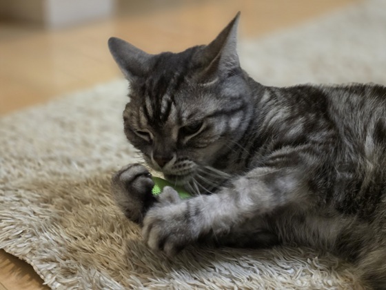 大事に仕舞っておいた、キャットニップの玩具。ダッドウェイ FAD キャットニップトイ ハート&リーフ 2個入り 猫 おもちゃ 関東当日便価格:749円(税込、送料別) (2025/11/18時点)あめはこれが大好き。開封したばかりだから、ニオイも強い。完全に酔っ払い。また買っておかなければ。毎朝のブラッシング。抜け毛も減ってきたね。多分、マルカメムシ↓クサかったっぽいw