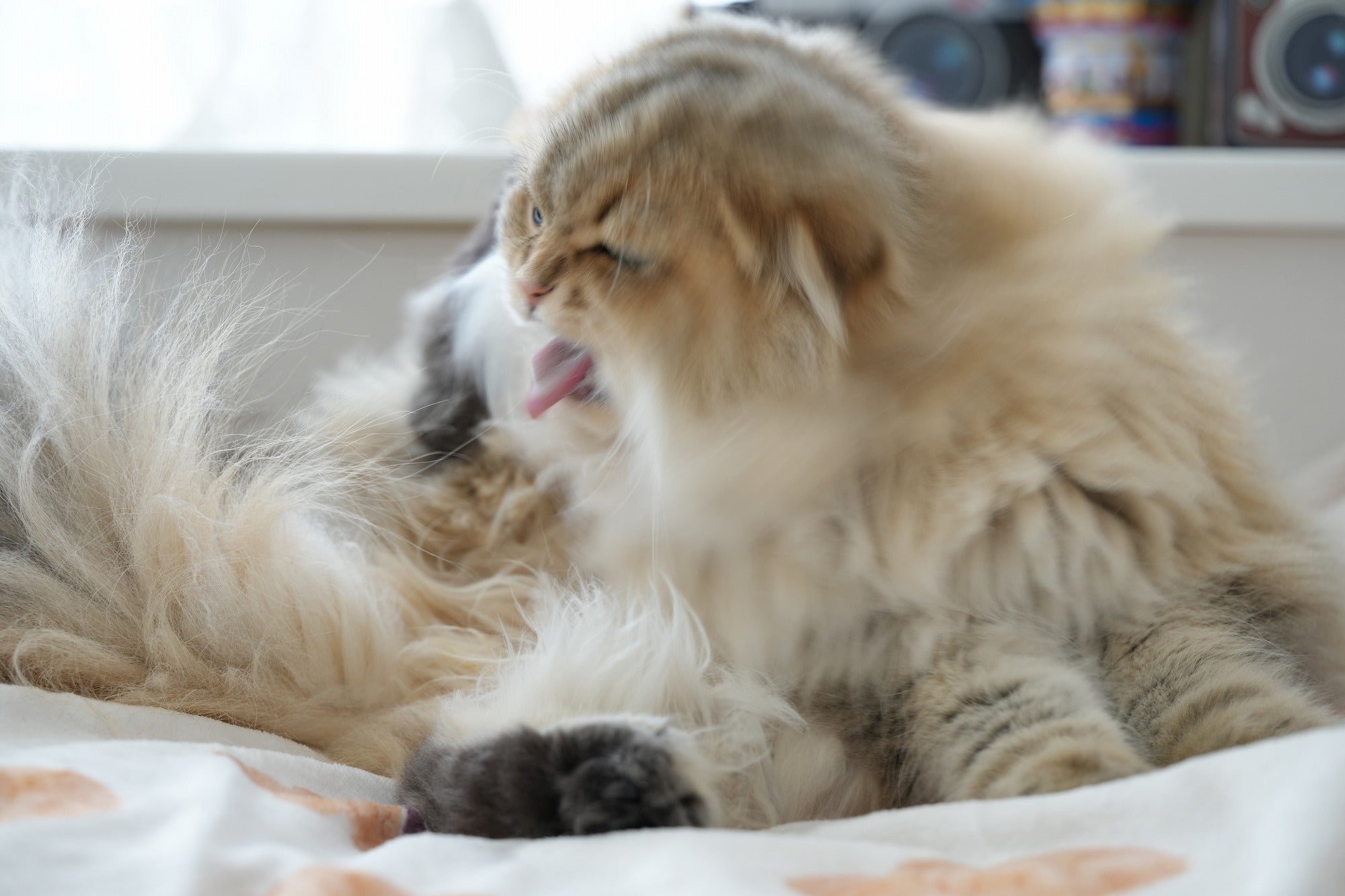 ものすごい勢いでお股のお手入れをしてから、 急にスンっとなるレオくん。 コロンママ「きょうはひさしぶりに買ったママクックのフリーズドライのササミがありますよ。」 レオくん「はじめて見ました。」 コロンママ「えっ、レオくんは初めてでしたっけ!?去年くらいまでよく買ってたので初めてだとは思いませんでした。」 (※ピノくんが腎臓を患ってから食事制限のため買ってませんでした。) レオくん「でもきっとおいしいやつです♡」 そう言って小さくペロリン。 中身の大きなササミはしっかりにおいを嗅いでから、 まずはペロン。 予想よりおいしくて勢いが出てきたレオくん。 舌を丸めるようにしてペ~ロペロ。 どんどん舌が早くなっていって、 ガウッ!! いつもは少食なレオくんですが、フリーズドライのササミに関してはとっても貪欲になっちゃうのでした。 &nbs