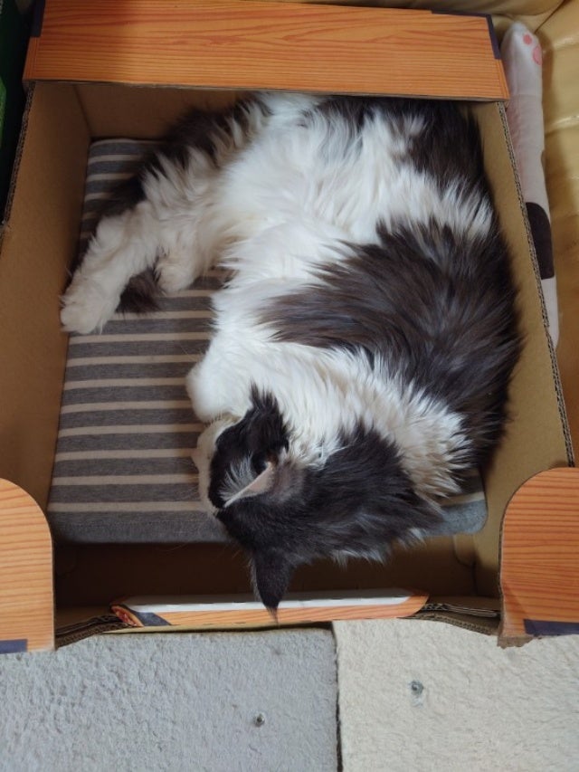 こんにちは 相変わらずコストコの空き箱が大活躍の我が家 今日もあんずが空き箱でお休み中 其処へ押しかけるのもこれまた定番な光景でして・・・ 押しかけたのはあんずの事が大好きなシェリーメイ 横になってのびのび寝ていたのに シェリーメイは満足そうですが あんまりあんずが押し込められているので シェリーメイを移動させようとしたら拒否られました シェリーメイにしたらあんずを守っているとでも思っているのでしょうか シェリーメイ 大好きなあんずと一緒で良かったね あんずも安心して寝ている様子 しばらくこのまま寝ているお二人さんでした どんな暖房より暖かくて安心な天然暖房の出来上がり~ 天然暖房を満喫しているあんずとシェリーメイにぽちっと押して応