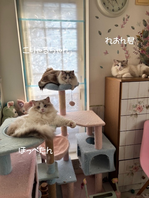 朝のはなぴん部屋。れおんは掃除機を警戒してます。掃除機が終わったらすぐに動画をつけてみたんだけど全く興味を示さないふたり・・💦花ぽんちゃんは狙いを定めてます。と、そこへ珍しくれおん君が。今日はお好みの動画だったみたい。オルくんは動画よりもジャラシで遊びたそうだったのでフリフリすると・・・楽しそうに遊んでるろぜちゃん。オルくんも爪とぎタワーに登って待ってます。ろぜちゃんとオルくん、可愛いんだけどはなぴん的に「うしろのまぼちゃん」が気になっちゃって(笑)まぼちゃんに近づいたらろぜちゃんがついてきてこの目力✨美人さんだよねぇ・・だけど、やっぱり気になるのはまぼちゃん。まぼちゃんって呼ぶと大あくび♪訪問ありがとうございます♪ポチっと応援クリックお願いします(*´▽`*)↓にほんブログ村ちびまぼちゃん♪