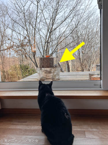 野鳥が見舞いの為に近付いてきたのか?実は 野鳥食堂2025がオープン してたのさ。お客さん第一号はゴジュウカラであった。