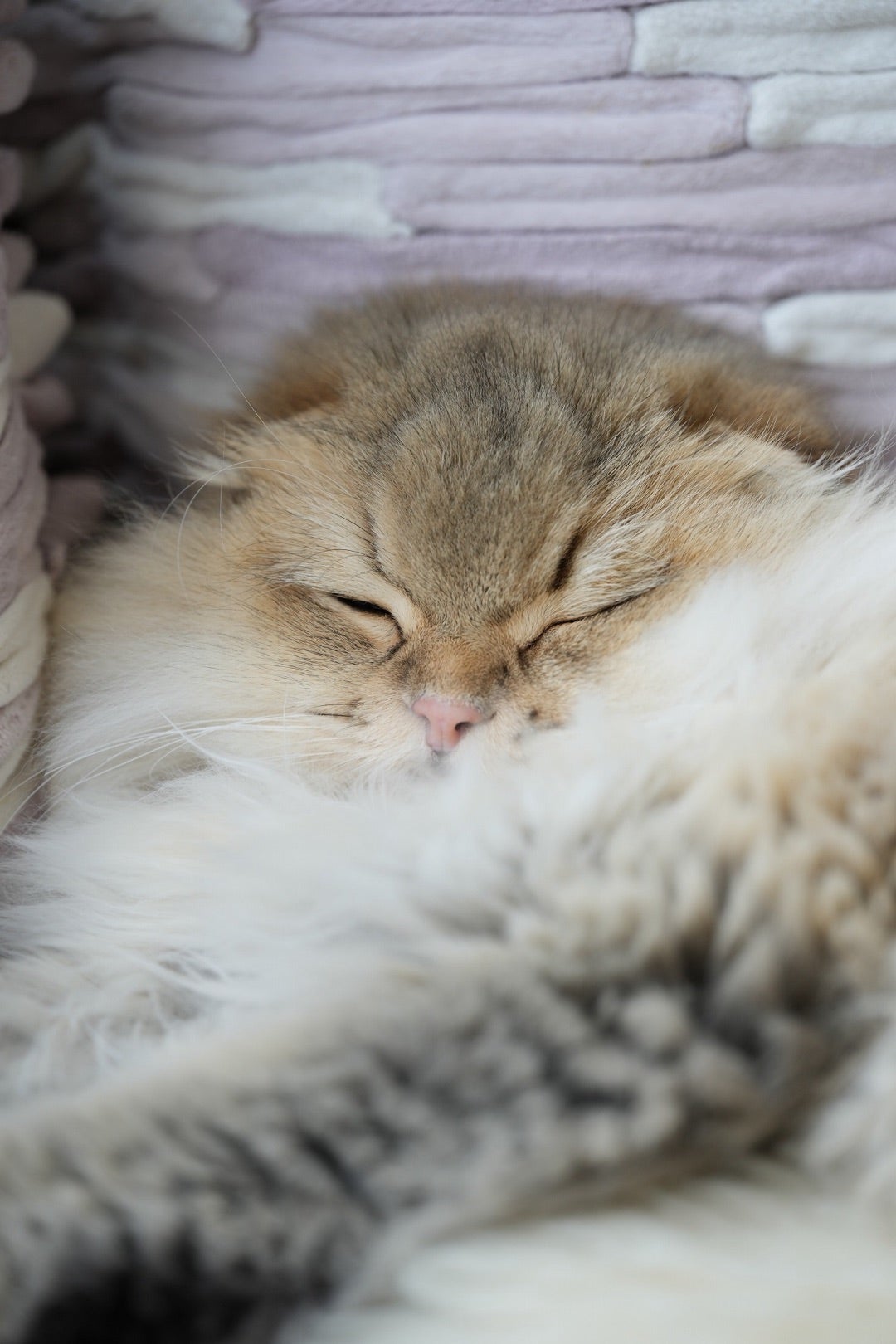 すぅ~、すぅ~。 とっても気持ちよさそうに寝てるレオくんは、 足裏のはみ毛がどんどん伸びてしまって、切るしかない感じになってます。 ウトウトしてるから大丈夫かな? それとも噛みついたり暴れたりするのかな? そーーーっと切ろうとしたら、 気づかれちゃいました。 コロンママ「お手入れ時の必須アイテム・水切りネットをかぶりましょう♪」 暴れん坊な猫ちゃんがおとなしくなるという魔法のアイテムですね。 水切りネットのおかげではみ毛は無事カットできました。 次のお手入れは爪切りです。 レオくん「ぼくは爪を伸ばしてるから切らないです!」 とっても悪~い顔で「爪切り不要宣言」のレオくんですが、 水切りネットを2枚重ねされたらおとなしく爪切り完了です。 コロンママ「ついでに苦手なブラッシングと毛玉取りもやっちゃいましょうか。」 はみ毛カット・爪切り・ブラッシ