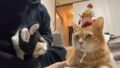 お手手ないない風にお座りのレオくんは、 すっかり潰れちゃったせんべいクッションの上です。 レオくん「毎日座ってたらぺちゃんこになっちゃいました。」 コロンママ「もう15年くらい使ってるからすっかりぺちゃんこですね。でもピノくんが使ってたテント型猫ベッドがあるのでどうぞ~。」 ピノくんが旅立ってからずーっと空だったベッドですが、レオくんは使うんでしょうか? しばらくしたら入ったレオくんは、 !?!? なんかすごい変顔になっちゃってます!! レオくん「ちょっと気を抜いたら変顔になっちゃいました。」 レオくん「ピノくんはどんな顔で入ってたのかな?」 ピノくん「ぼくはウィンクしながら入ってました☆」