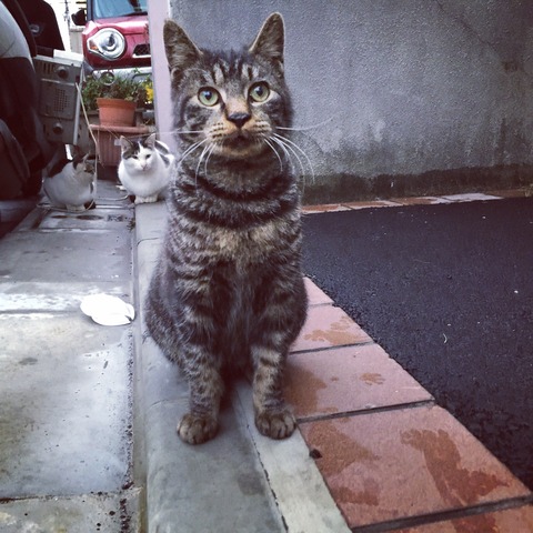 猫だまりを巡回していた頃の画像には、二度と見ることのできない風景が多数あります。黒キジ子猫と、後ろにいるのは虐待事件に遭うも最後は優しき人たちの手で幸せにたどり着いたジロウくんの野良時代の姿が。二度と見ることができないと言うのは、猫がいなくなったということではなく、この施設そのものがなくなったということ。今では全く違う建物になってます。ジロウくんがなぜここにいたのか、どういう血縁なのかはわかりません。しかしここはここからずっと因縁が続く種馬黒猫やレオ太の縄張り付近。ジロウくんもまたその一族だったのかもしれません。失われた景色というと、釿汰との散歩ルートにもたくさんありました。ちょうど古い街の取り壊しと建て替えが進む時期。住民の入れ替わりも多かったようです。たぬチキ様がいたこの「猫の道」も、猫がいなくなりただの脇道になったほか、写ってる三つくらいの建物が取り壊しと建て替えされてます。もう猫が多かった頃を覚えている人もほぼいないかもしれません。猫だけでなく、人も、物自体も入れ替わります。